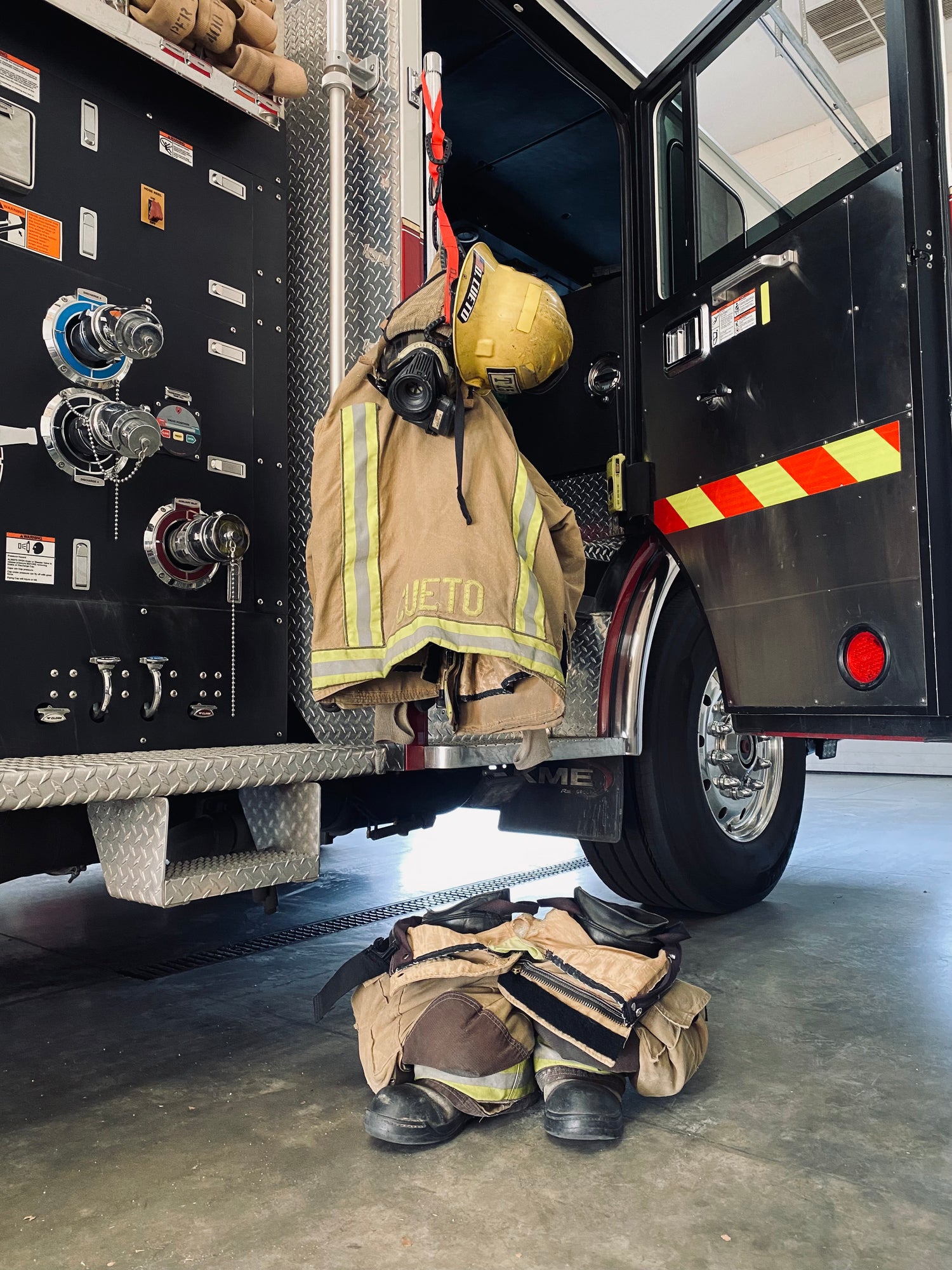 Attach your helmet, turnouts, medical coat, wildland jacket all in one place with our patent pending design.